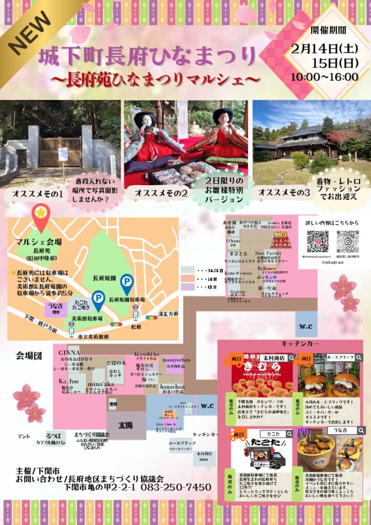 2026/02/14〜2026/02/15みんなで出かけよう 長府苑ひなまつりマルシェ