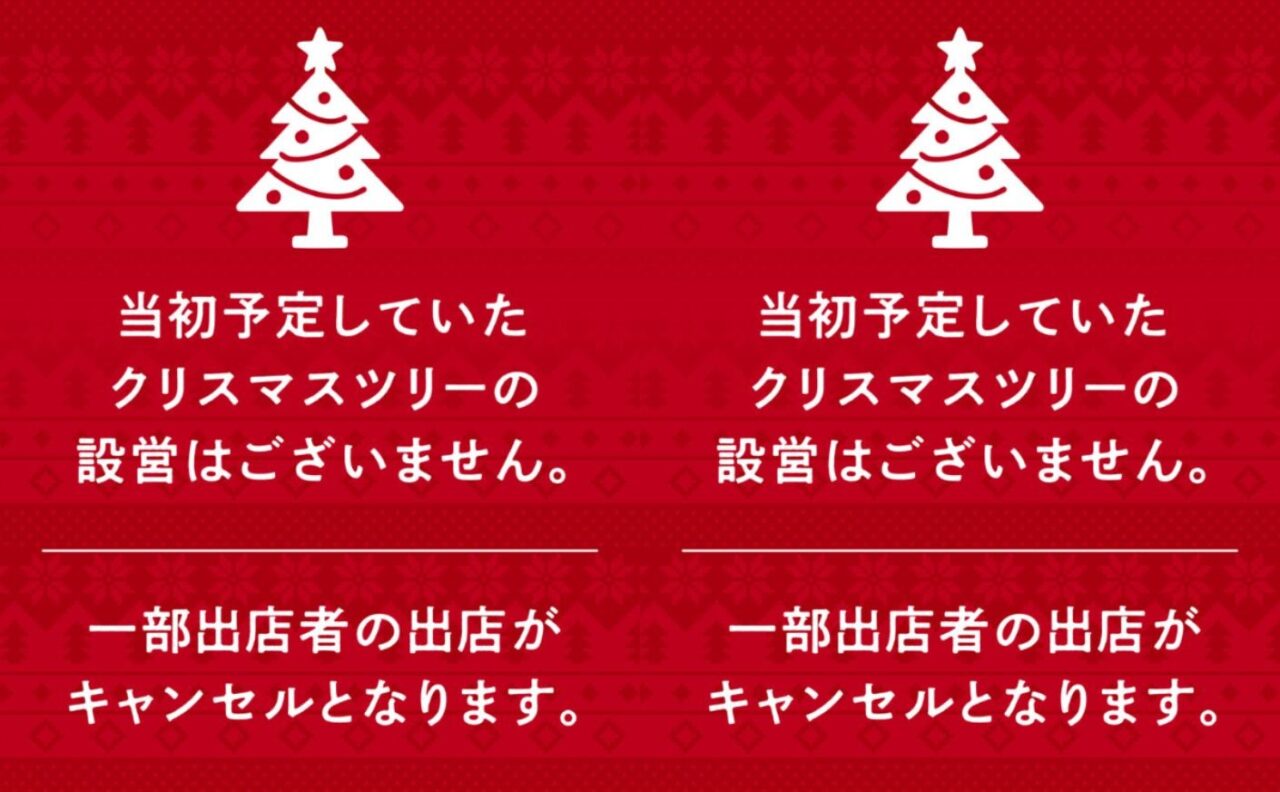 残念ながら、クリスマスツリーの設営は中止となりましたが、それでも、クリスマスマーケットの会場には、キッチンカーを含む24店舗ほどのブースが華やかに並びます。