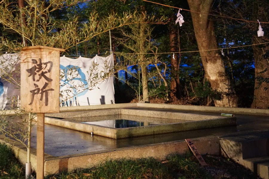 みそぎ開始時間は各日6時30分と18時から。各回共に当日申込制で、みそぎ開始の1時間~20分前までに社務所で受付を済ませてください。