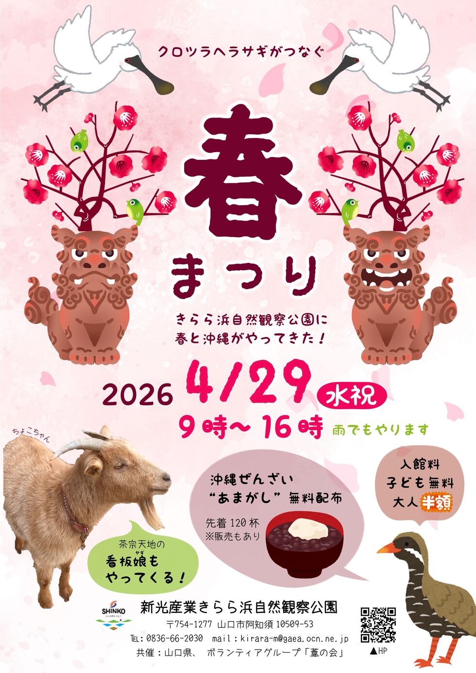 4月29日(水祝)9時から16時まで、新光産業きらら浜自然観察公園(山口市阿知須)で「春まつり」が開催されます。
