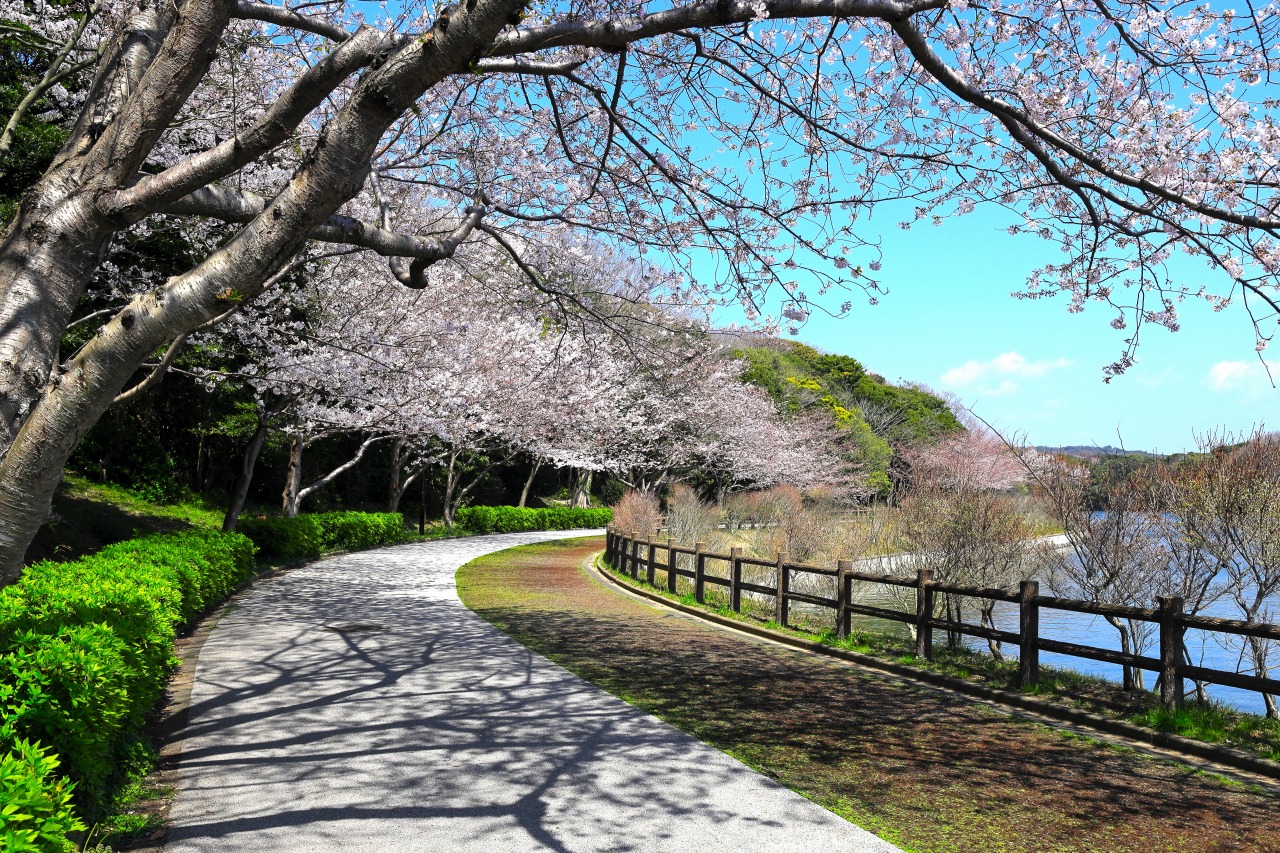 公園を囲む外周遊歩道や市民の森の一角に植えられた桜が一斉に花開き、ピンク色の柔らかな景色に包まれます。約570本もの桜が咲き誇るこの風景は、のんびり歩くだけでも心が弾む美しさです。