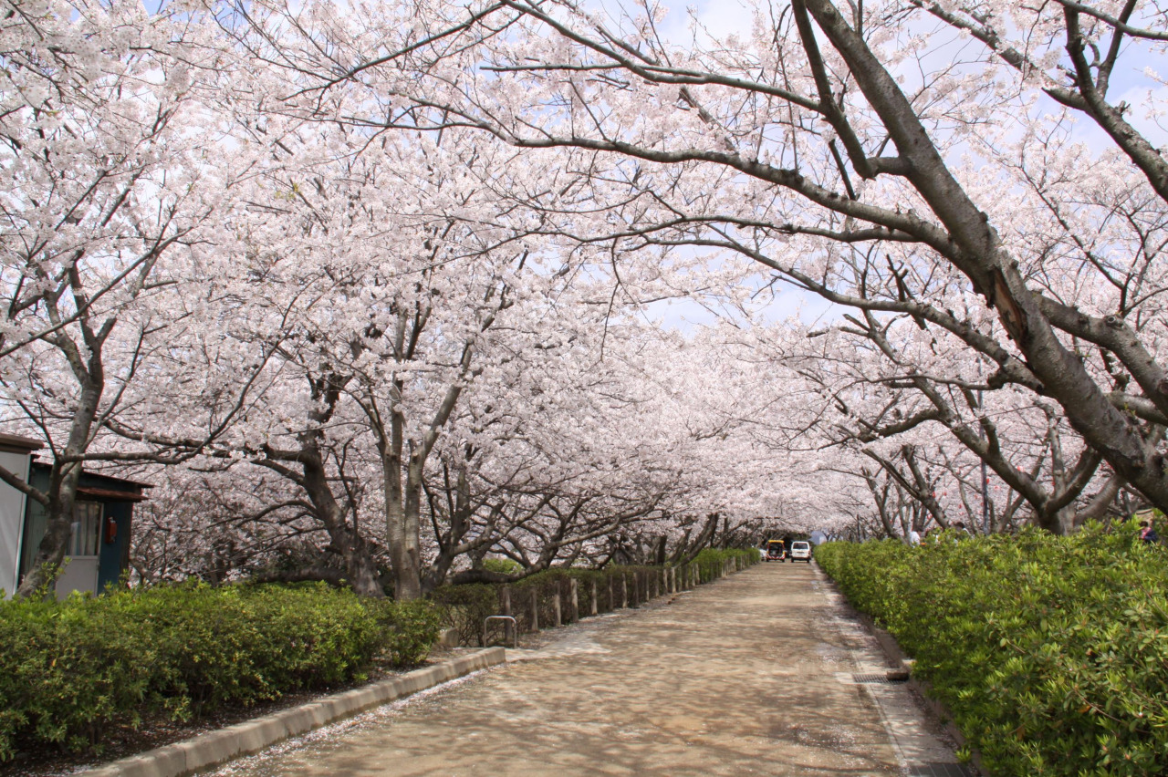 園内にはおよそ数百本の桜が植えられ、満開の時期には空を覆うような桜のトンネルが広がります。風が吹くたびに、はらはらと舞い落ちる花びら。足元まで桜色に染まる景色は、まるで映画のワンシーンのよう。