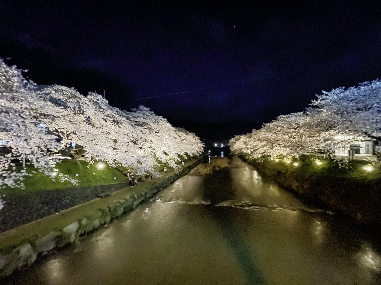 「一の坂川」は、京都の鴨川に見立てられた風情ある山口市の中心的存在です。春にはソメイヨシノが約200本ほど咲き、山口県内でも屈指の桜の名所です。毎年恒例のライトアップイベントも好評。